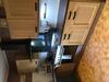 Modern fitted kitchen with smeg range dual fuel cooker and bosch dish washer, door way into garage/workshop/utility with wc and basin.