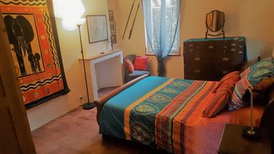 Along a short passage-way is the main bedroom, spacious and airy with many original features. Reversible air-conditioning maintains a comfortable temperature. This is a cool sanctuary where the mellow chime of the town’s bell-tower clock is the only sound from outside.