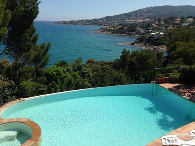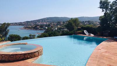 The 2500m2 garden is enclosed for visitors greater comfort. Situated at 200m from the sea and the regional road between Fréjus and Sainte Maxime, the villa is very good situated to visit the surroundings.