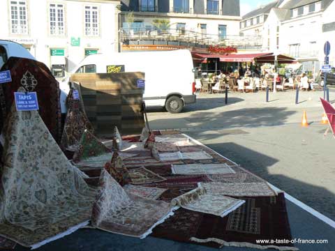 Concarneau market is on a Friday morning it is held on the car park in front of the indoor market.We arrived At 9.30am and it was already busy there is a large free car park 100 yards down the sea front.That was full so come early the market is more or less at the end of the sea front. So if you drive round the headland you can park on the Quai de la Croix overlooking a nice little beach and harbour wall. It is then only a short walk down Rue Tourville a street to the back of the market.
