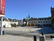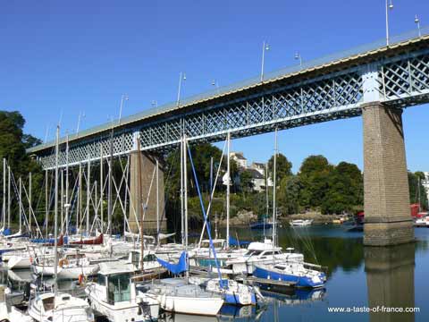 Quai du pont Rhu you can park here and walk along the river bank there are lots of Cafe and bar in the area.