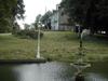 There is also a covered patio to the side used for games or storage. On the boundary of the garden is a babbling brook which meanders into the pond, and in the middle stands an attractive three tiered fountain. Around the seated patio area grow many different eye catching plants dominated by a magnificent Wisteria and rose, climbing the house.