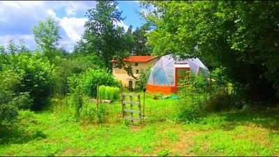 The land of 5000m ² includes a greenhouse dome of 19m ², a ruin of 30m ², spring water with tank, vegetable garden.