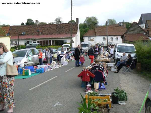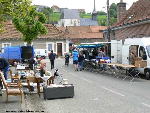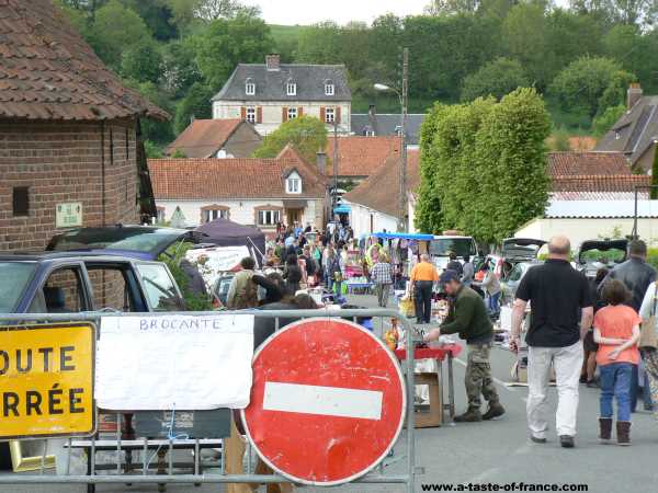 The village if next to the river Crequoise a small river that flows into the river Canche at Beaurainville. We first drove through the village on a Saturday and saw a sign for a Brocante on the Sunday.The nice thing about a French car boot is that they shut the village roads.The stalls are then set up outside their houses.