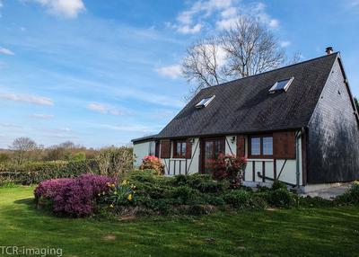 For sale Normandy country cottage with out-buildings and large 3500M2 garden with open country views.