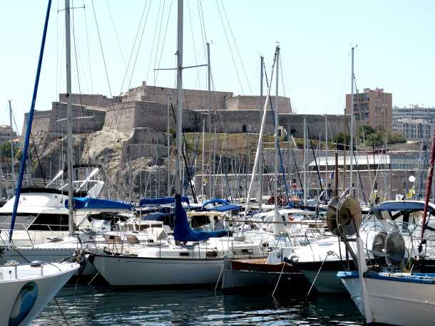 The Old Port area has a large marina at the entrance to the Old Port there are two large forts - Fort St Nicholas and Fort St Jean .