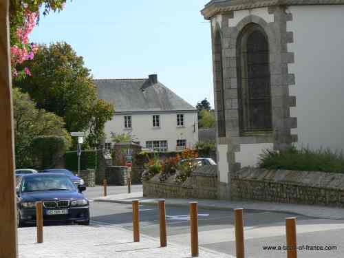 Moelan sur Mer is another nice little country village.We stopped there on our way to Quimperle.There are a few Hotels in the town and several restaurants. We spent 30 mins walking round the village centre called in a gift shop and bought a nice postcard.The card was like a water colour painting of the town.Found a nice cafe to write the card with our morning coffee and croissant before moving on