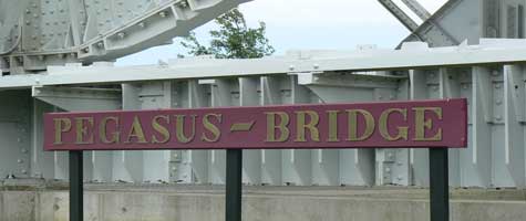 The bridge in the photo is the new bridge the original is in the grounds of the Pegasus museum. The museum is just before the bridge if you are heading toward the port of Caen on the right. Across the bridge on the left is the famous Cafe Gondree which was one of the first place in France to be liberated.
