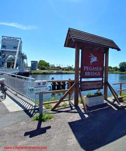 Pegasus Bridge our visit to the site of this famous WWll battle.The bridge is in the town of Ranville post code 14860 about 9 miles from Caen.