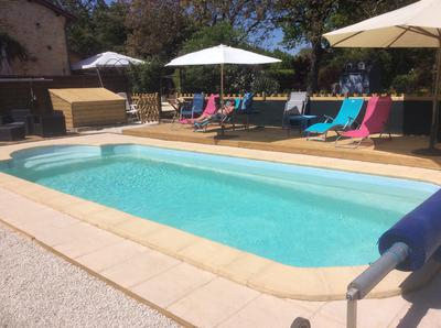 Outside - To front of property gravelled parking area for 6 vehicles, various shrubs and a well. To side and rear of property enclosed 9m x 4m heated swimming pool with large decking area and pool chalet.