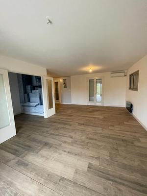 Grand séjour avec cuisine ouverte aménagée (refaite à neuf) + grande terrasse - Deux chambres - Un WC indépendant - Une salle d'eau (douche) simple vasque avec meuble