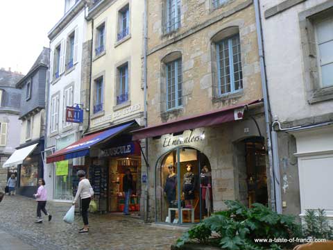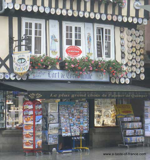 There are plenty of shops and cafes in the timber framed buildings. Quimper is famous for it`s pottery which was expensive but is handmade.The Cathedral has been restored to a high standard and is well worth a visit there is no charge.You can see our photos of the Cathedral Here