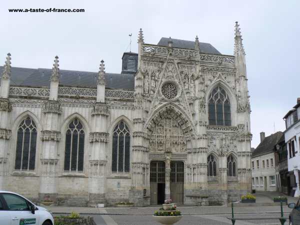 We visited Rue on our way back from the market at Le Crotoy.We spent a couple of hours walking round the shops and looking at the old churches.The stone work on the outside of Chapelle du Saint-Esprit was exquisite.The other church L'Eglise Saint-Wulphy which is across the road had some interesting carved stone figures.