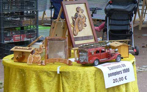 The market is spread round the main square several streets and some of the car park.It is one of the largest markets in this area.As well as local produce there was a good range of goods clothes, jewellery hand made baskets. There were a few small stalls no more than a card table. People had brought things from their garden one lady had 5 duck eggs a couple of bunches of carrots straight from the ground and about twelve potatoes. Another stall had two carrier bags of walnuts straight from the tree we got those for 5 euros